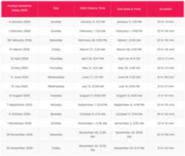 Here are the upcoming Pushya Nakshatra dates and Timings: